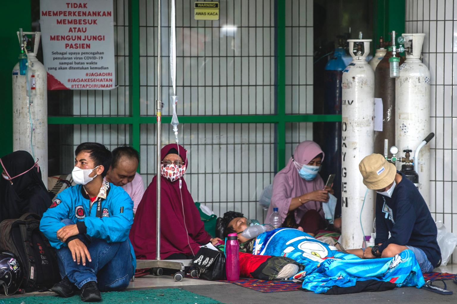 People wait for admission outside the emergency ward of a hospital tending to Covid-19 patients in Surabaya on July 11, 2021.