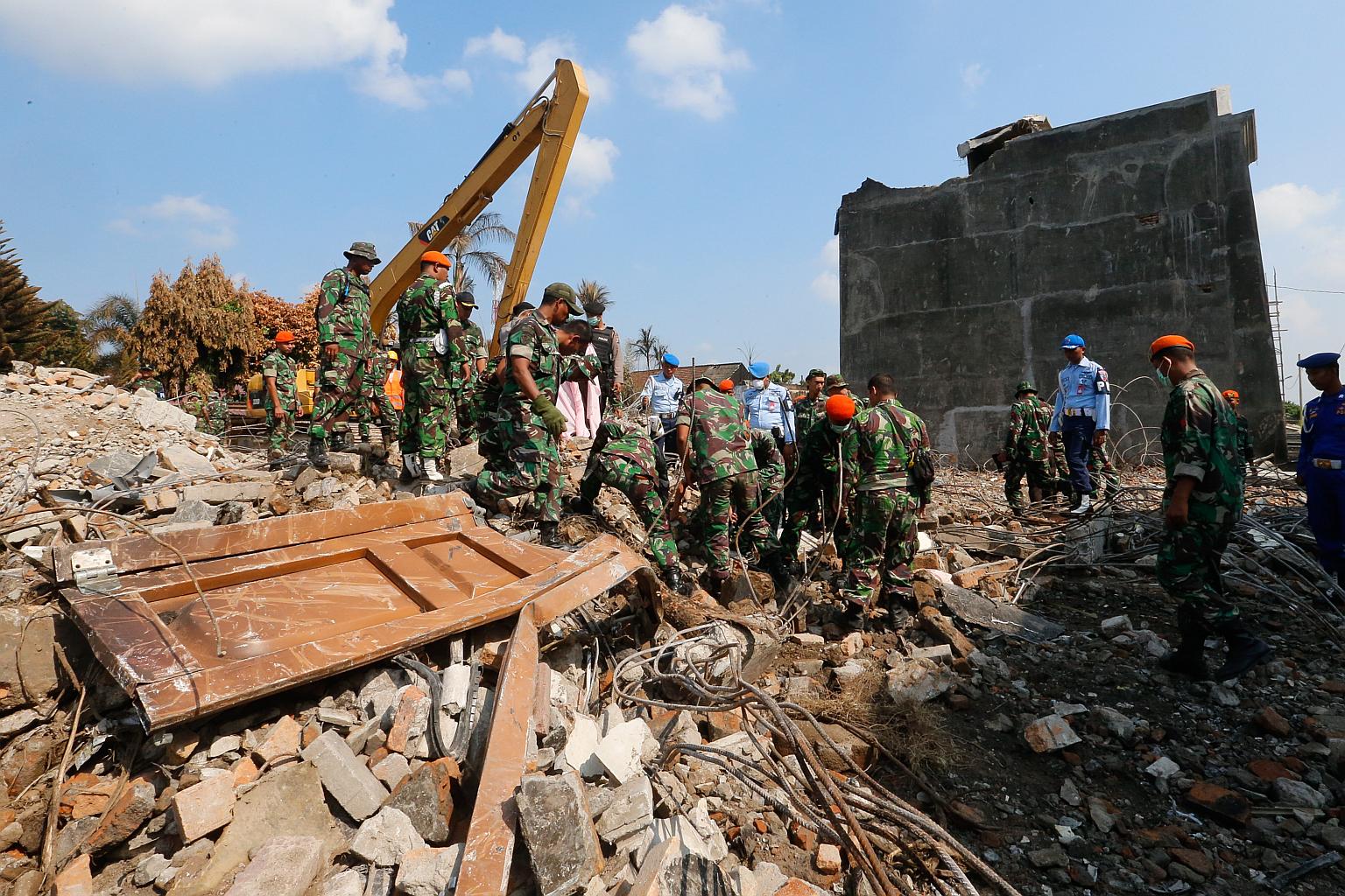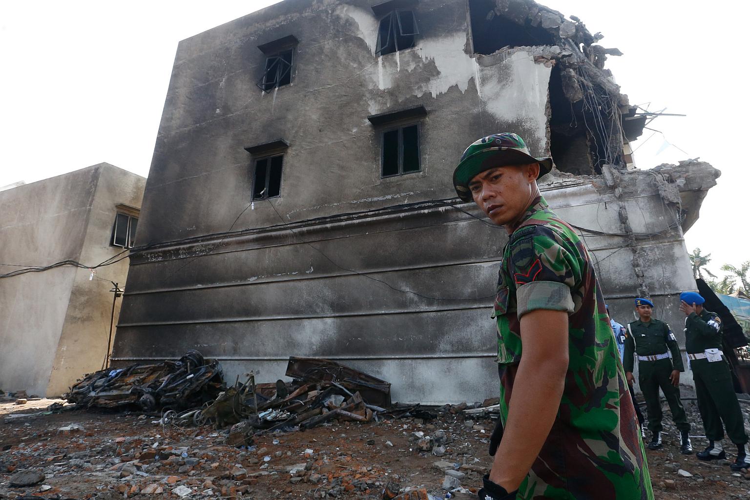 Medan - Indonesian soldiers continued searching for bodies trapped under rubble two days after a military plane crashed into the city of Medan and exploded in a fireball shortly after taking off from a nearby airbase.