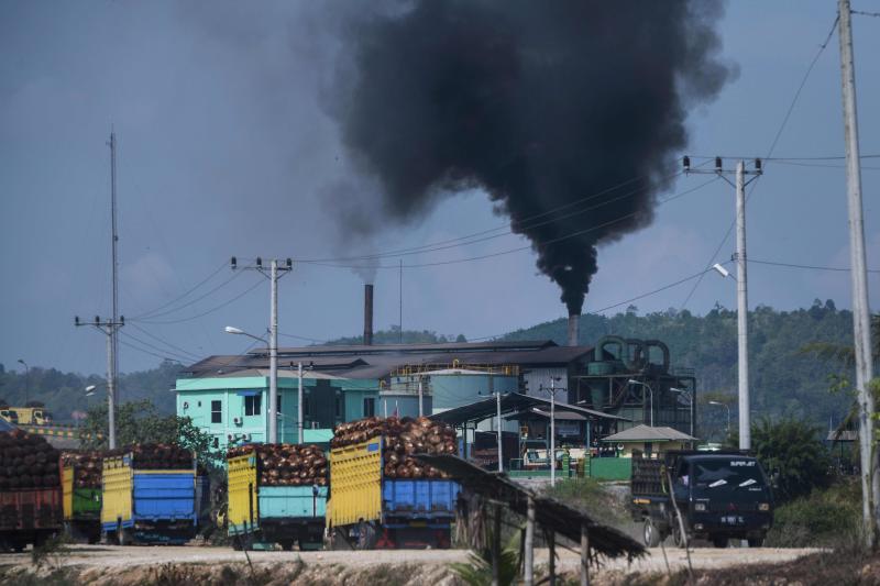 Thick smoke spews from a crude palm oil factory in Langsa, Indonesia, on April 15, 2018.