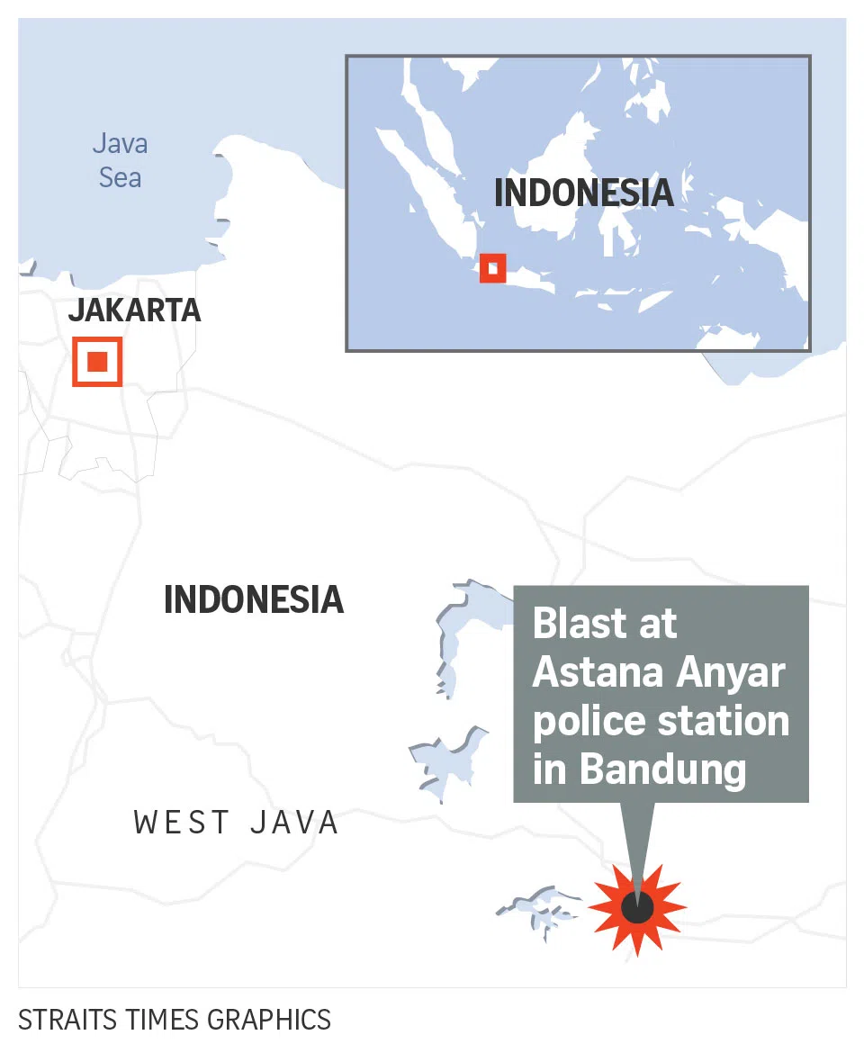 Bandung police official Aswin Sipayung told Kompas TV that “a man trespassed while wielding a sharp weapon; he was trying to get through as the police officers were going through the morning roll call”.