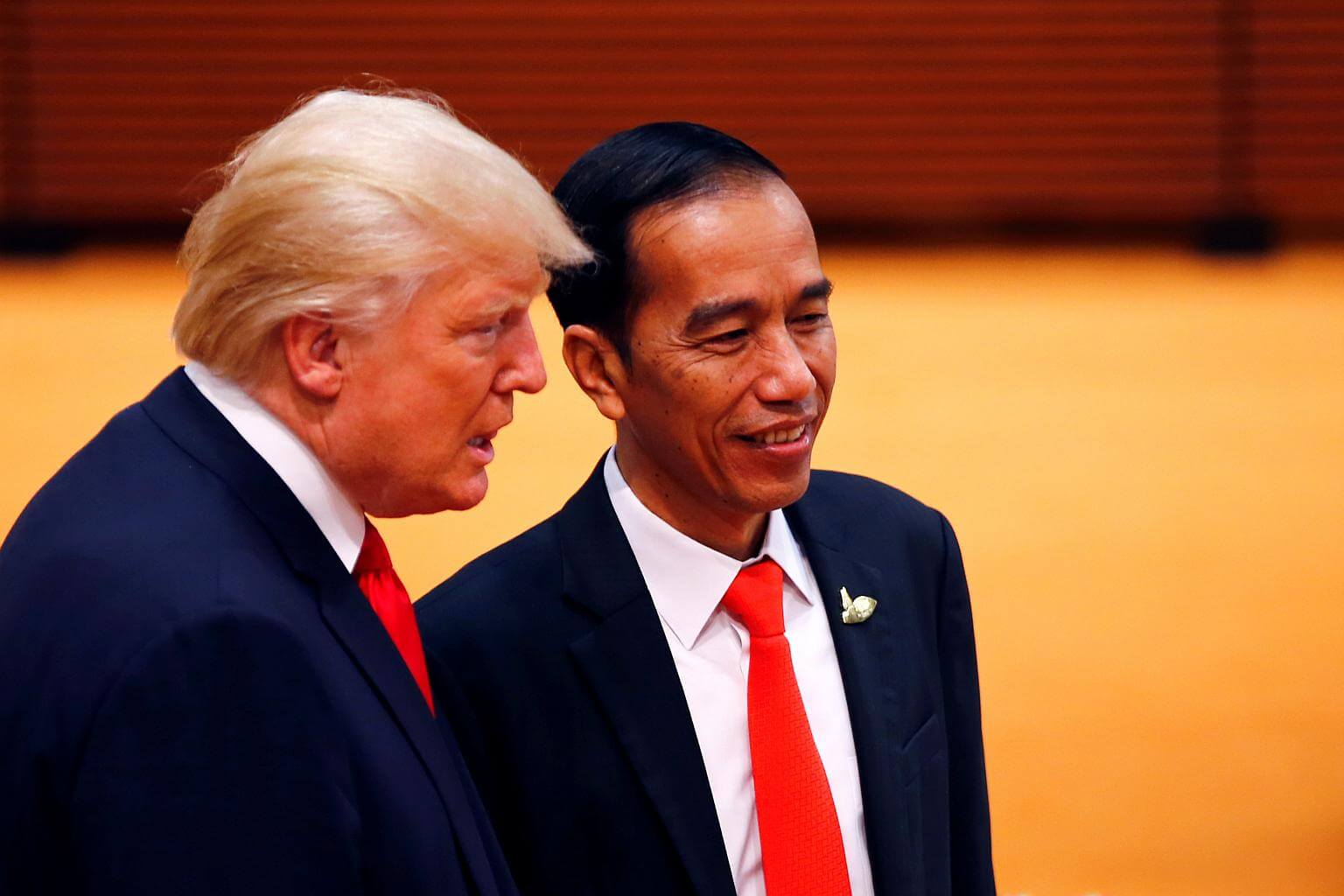 US President Donald Trump talks with Indonesia's President Joko Widodo at the G20 leaders summit in Hamburg, Germany, on July 8, 2017.