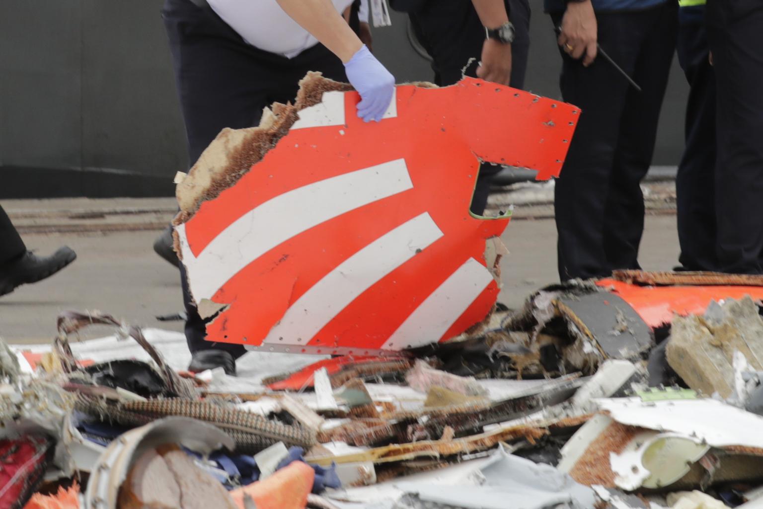 An aircraft part from the Lion Air flight JT-610 plane crash at Tanjung Priok Harbour, on Oct 30, 2018.
