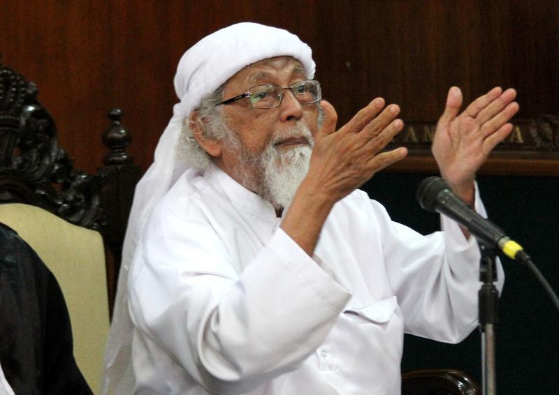 Indonesian cleric Abu Bakar Bashir at a court appearance in Cilacap, Central Java, on Feb 9, 2016.