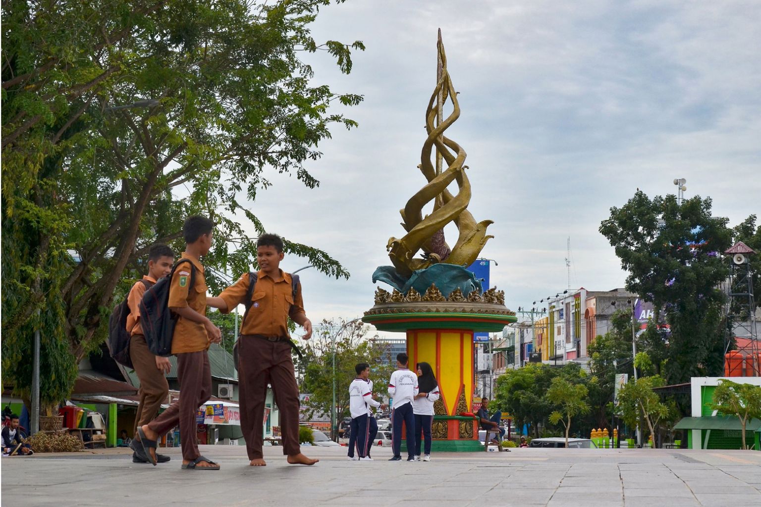 The park and sculpture - depicting golden dragon tails twisting around a traditional dagger - on the island of Sumatra were inaugurated late 2016 on International Anti-Corruption Day and aimed to symbolise the province's fight against graft.