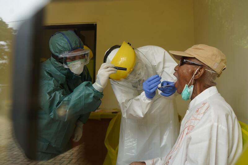 An Indonesian medical team takes a swab in Indonesia on April 6, 2020.