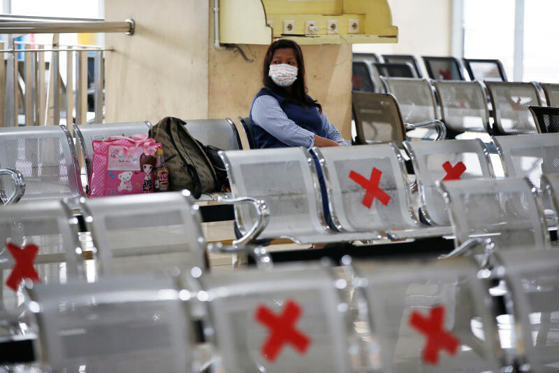 A passenger wearing a protective mask sits in Indonesia on April 12, 2020.
