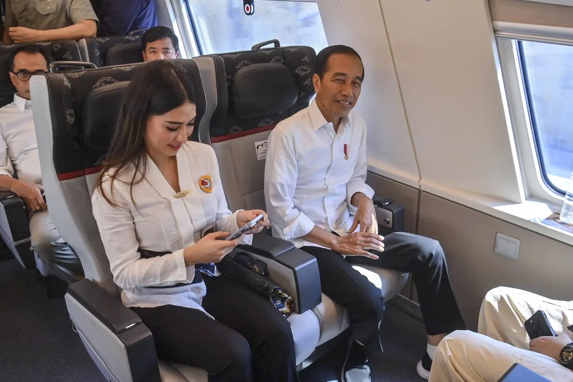 Indonesian President Joko Widodo on the Jakarta-Bandung high-speed train during a test ride on Sept 13, 2023.