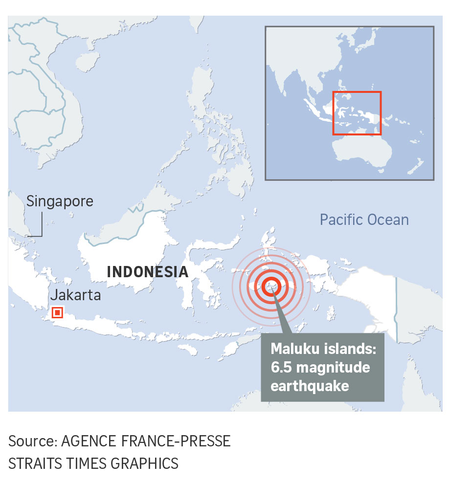 AMBON CITY, INDONESIA (AP, AFP) At least 20 people were killed after a 6.5-magnitude quake struck off the remote Maluku islands in eastern Indonesia on Thursday (Sept 26), destroying homes and triggering landslides that buried at least one of the victims.
