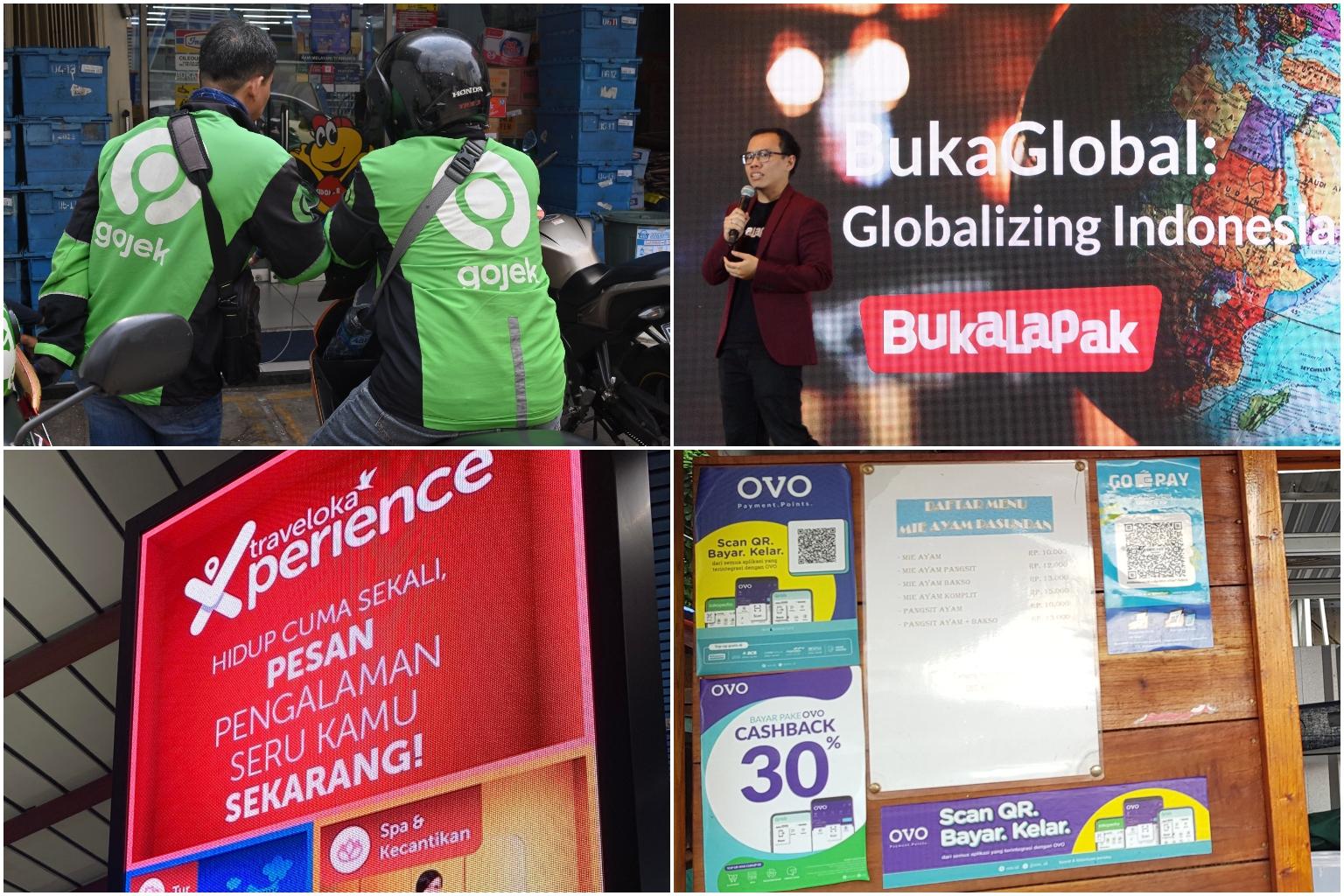 (Clockwise from top left) Gojek, Bukalapak, Ovo and Traveloka are among the six Indonesia-based unicorns.