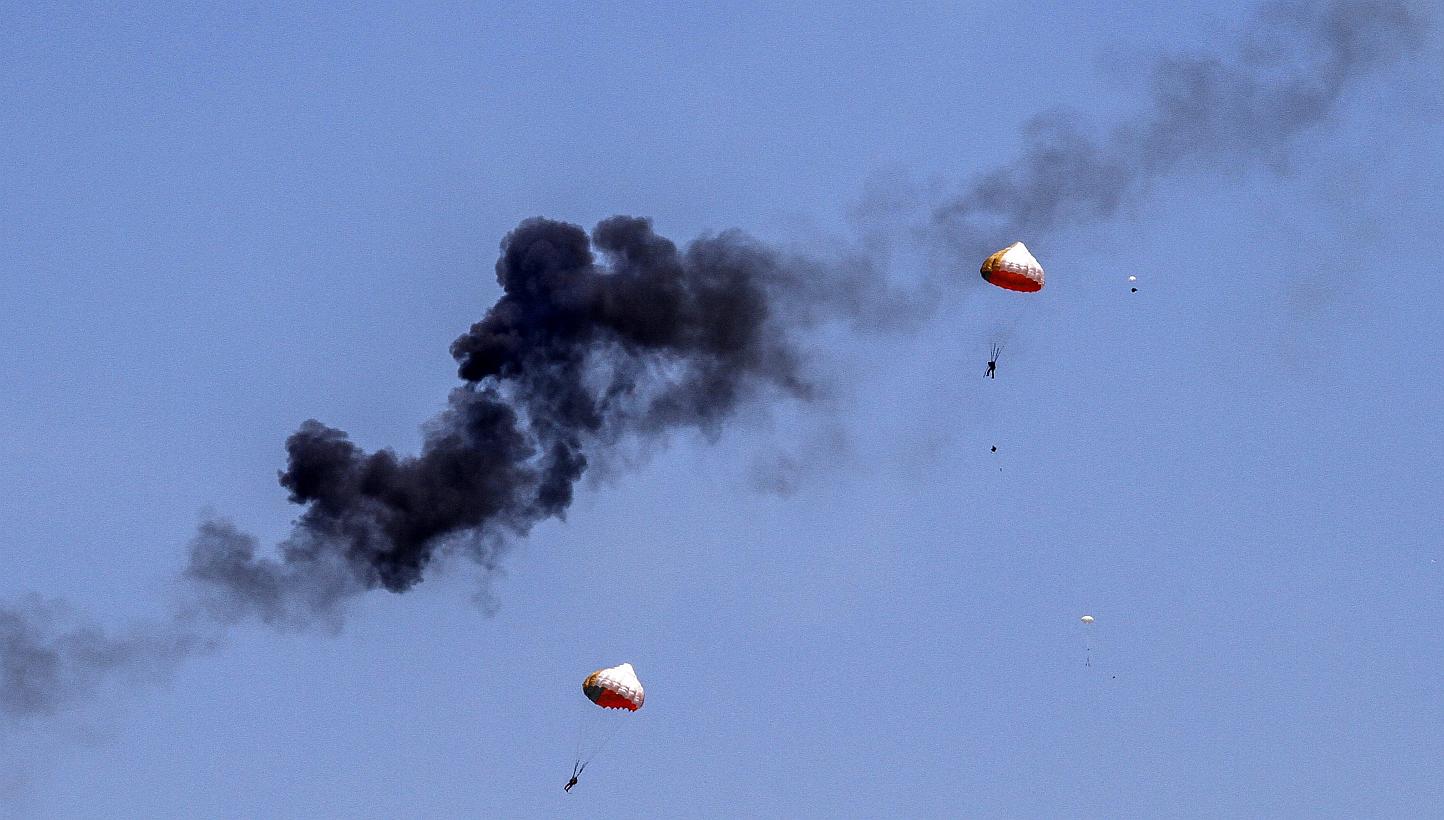Wreckage of one of the planes could be seen inside a rubber plantation while one parachute was seen hanging over power lines nearby.