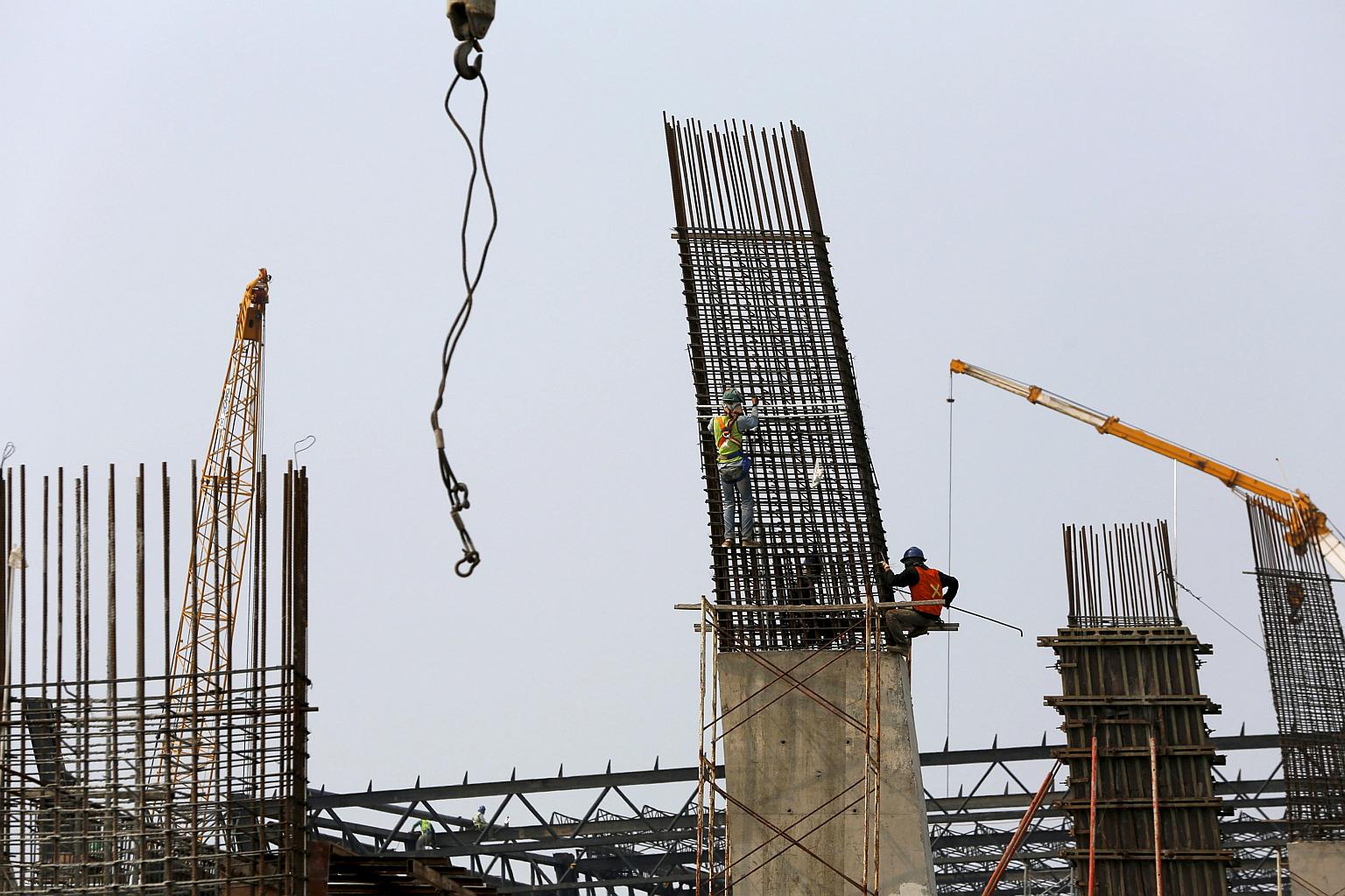 Construction workers are seen on the site of the new Terminal 3 at Soekarno-Hatta International airport near Jakarta on July 8, 2015.