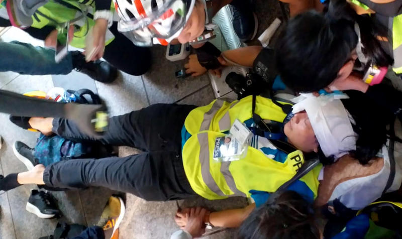 "We deplore the use and threat of violence towards journalists covering events in Hong Kong from any source and call on police and protesters to allow journalists to carry out their job of reporting the facts without risk of serious injury or threats of violence," it added.