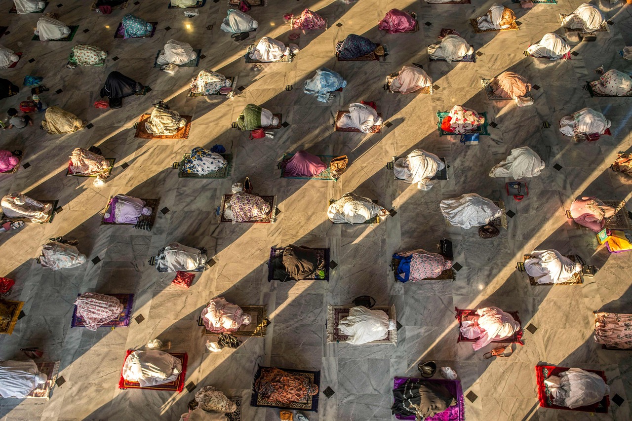 In Indonesia, worshippers were advised to maintain social distancing during the prayers as the world's biggest Muslim-majority country struggles to contain the spread of the virus.