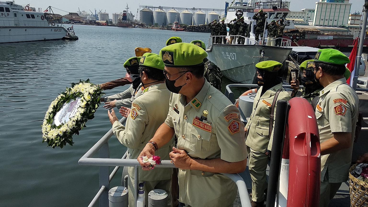 A Navy official told The Straits Times that family members of the lost crew will join hospital ship KRI Soeharso on Thursday to pray and ceremoniously scatter petals in the Bali Sea.