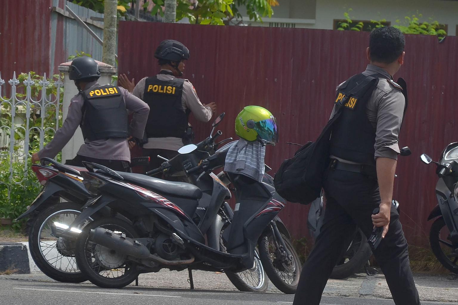 File photo showing Indonesian policemen responding to an incident in Riau, Indonesia, on May 16, 2018.