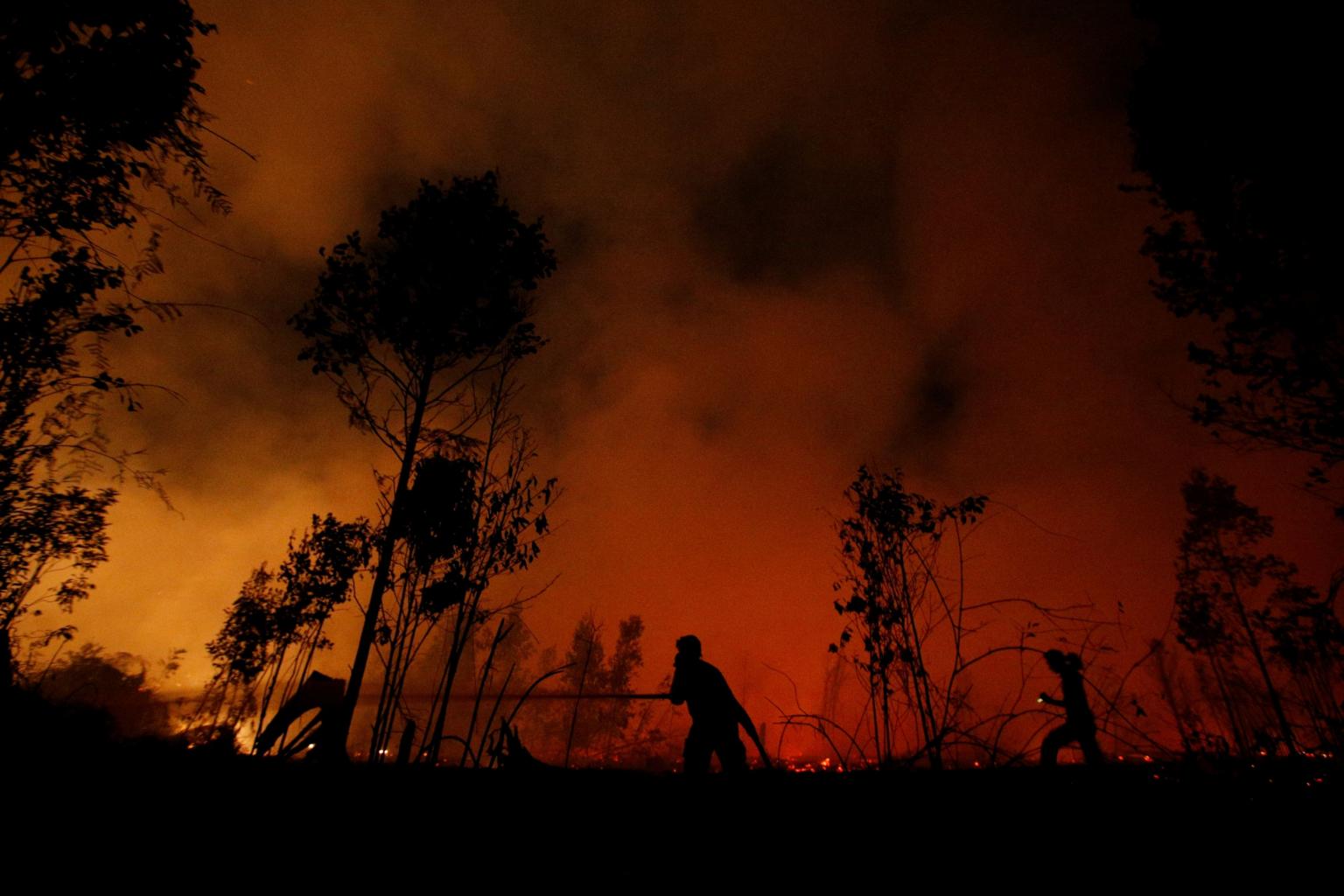 A photo taken on Sept 14, 2019, shows firefighters extinguishing forest fires in Palangka Raya, Central Kalimantan.