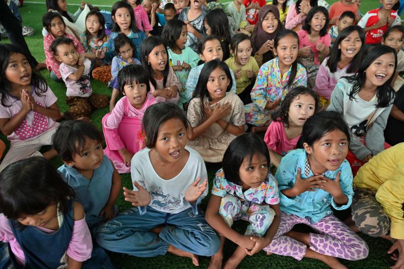 LABUHAN (AFP) - Via Sundari Octavia keeps a watchful eye on her small children as they sing and dance - part of a trauma healing programme for kids displaced by Indonesia's deadly tsunami.
