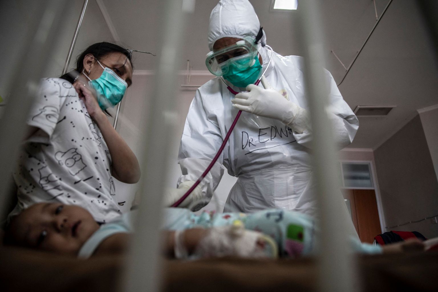 A doctor tends to a baby who tested positive for Covid-19 at a hospital in Bogor, Indonesia, on June 23, 2021.