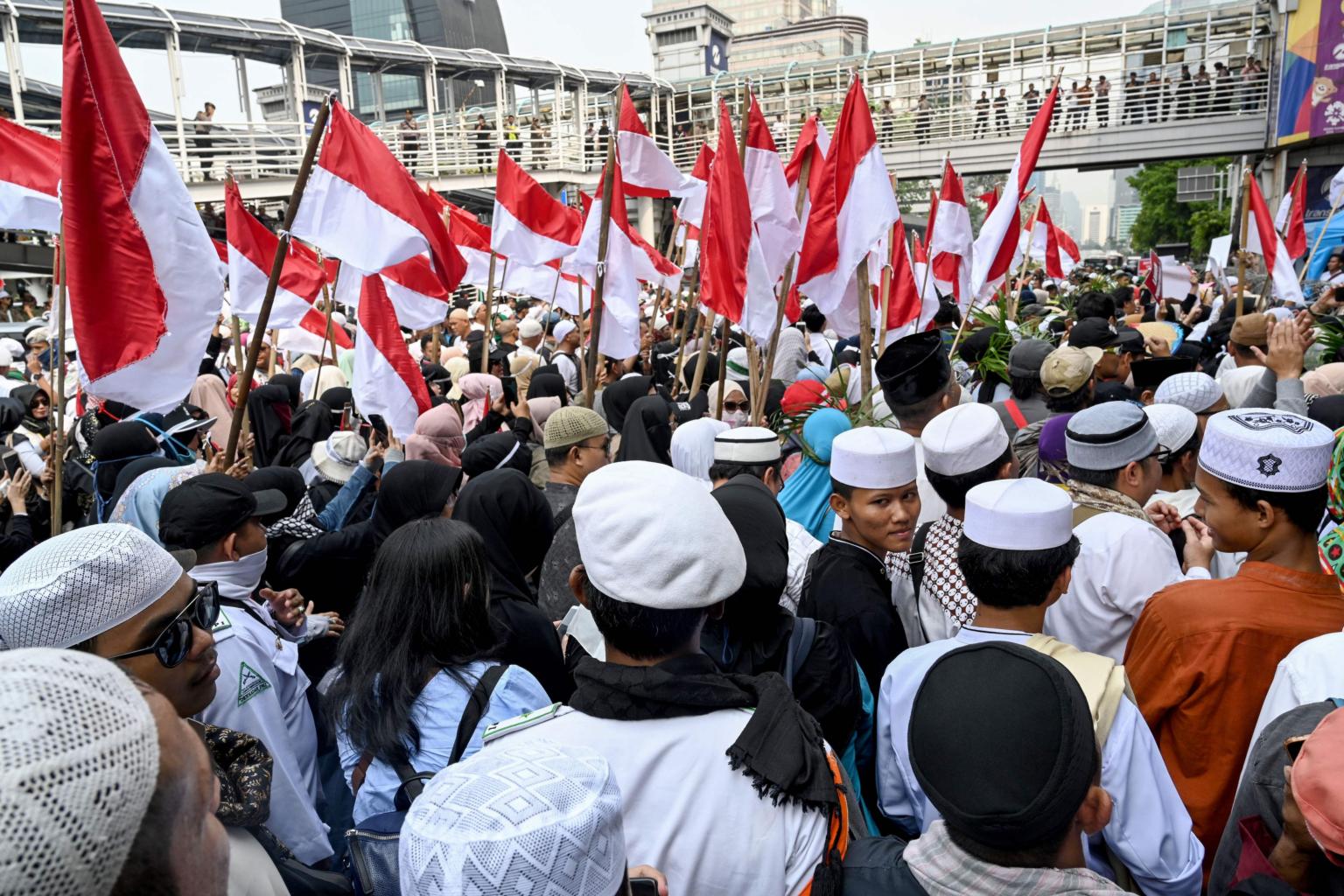 Indonesian protesters, mainly supporters presidential candidate Prabowo Subianto, stage a demonstration against alleged voting fraud in the recent Indonesian election in Jakarta on May 10, 2019.