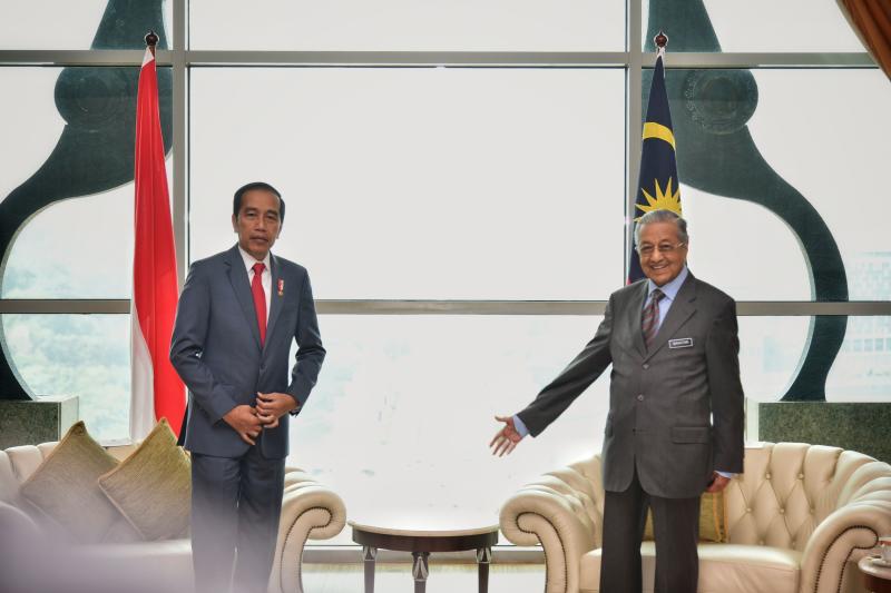 Malaysian Prime Minister Mahathir Mohamad and Indonesian President Joko Widodo during an official welcoming ceremony in Putrajaya, Malaysia, on Aug 9, 2019.