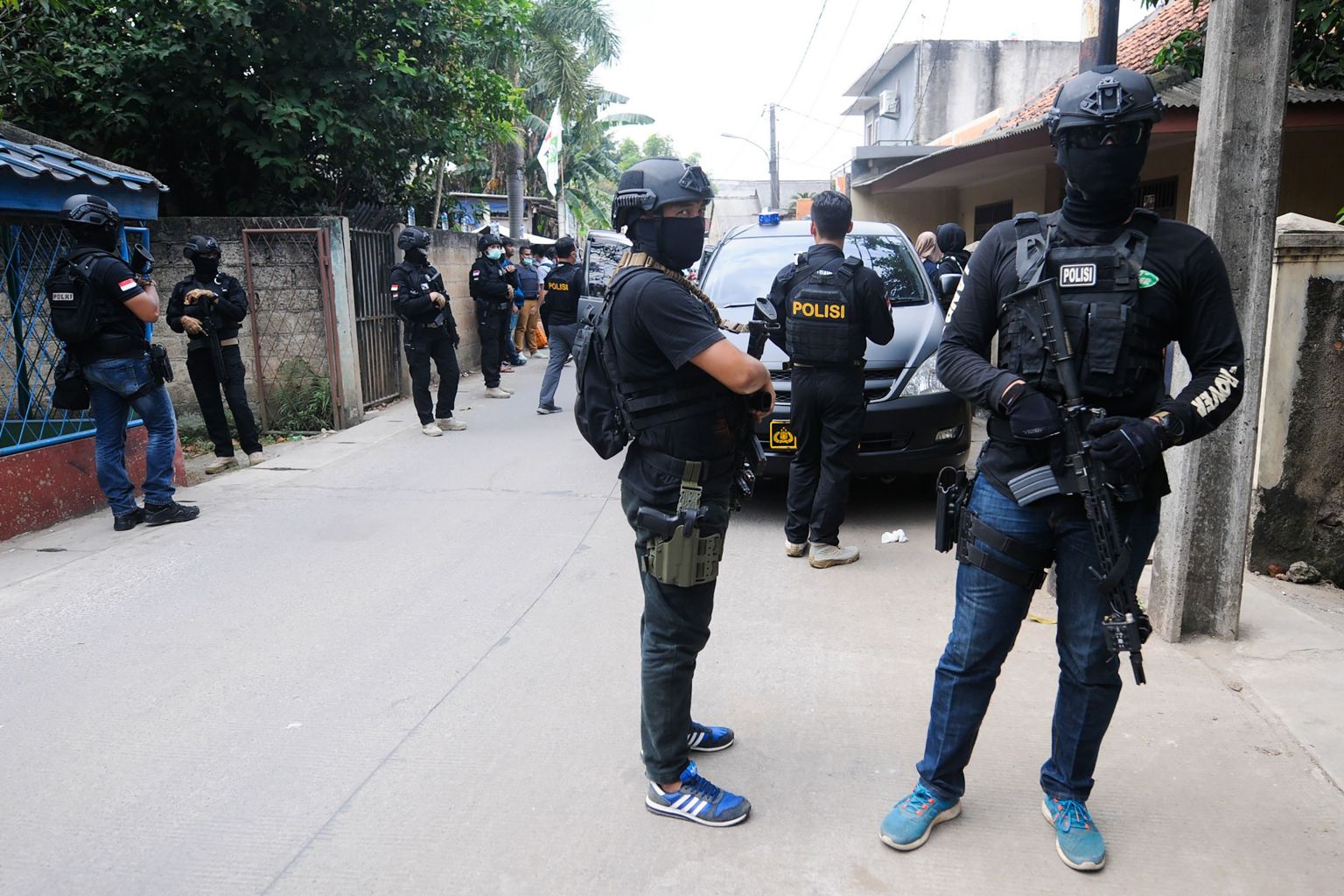 Indonesia counterterrorism squad Densus 88 conduct a raid in Tangerang, following a recent spate of terror attacks in the country, on May 16, 2018.