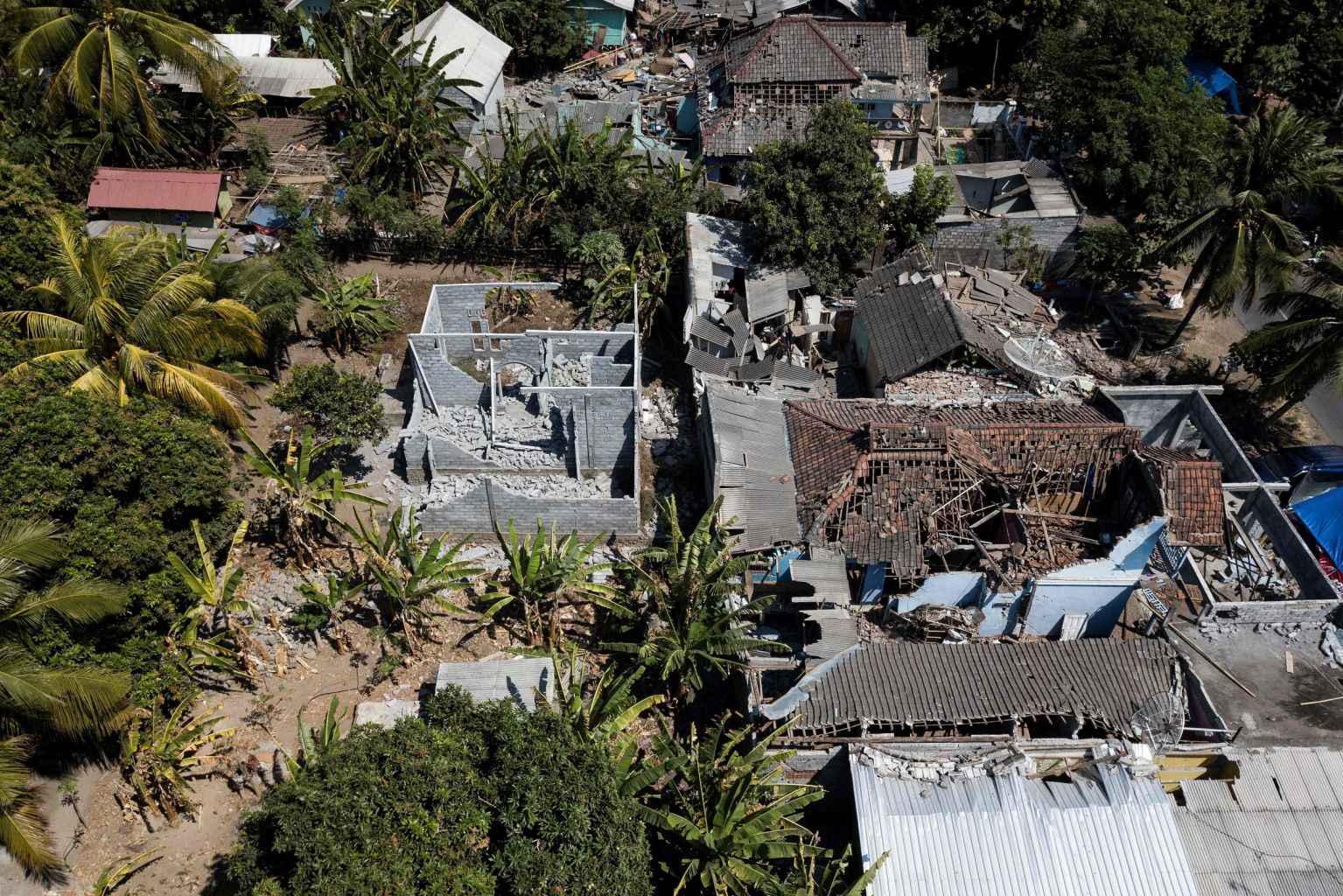 The quakes and aftershocks that killed nearly 500 people are estimated to have caused damage of 5 trillion rupiah to hospitals and public infrastructure on the island's northern coast.