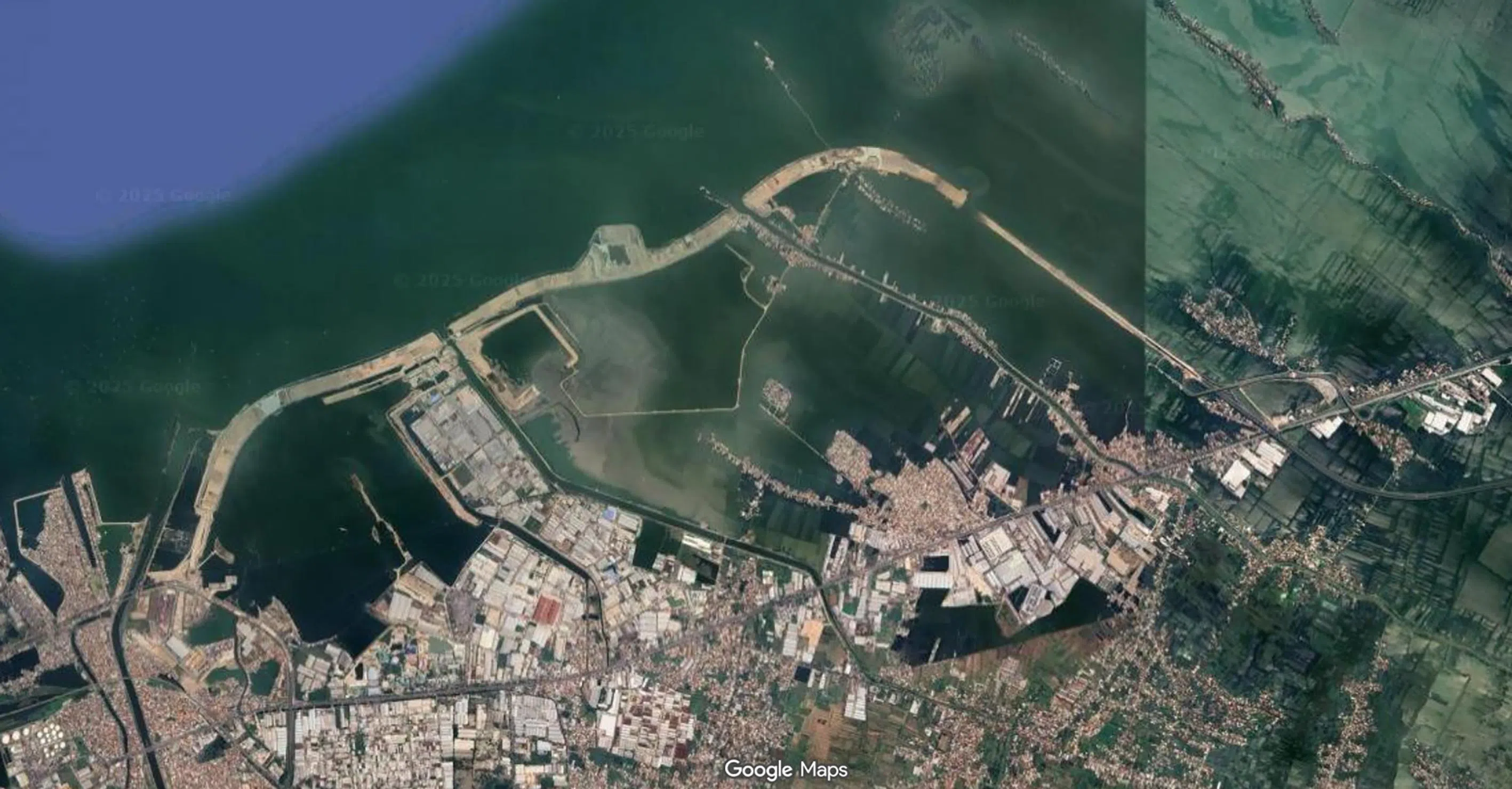 A satellite image of the Semarang-Demak Seawall.