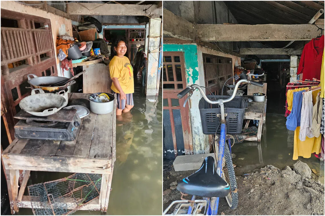 SEMARANG/DEMAK, Central Java province – Ms Pangestuti, a mother of one, has become used to cooking in her kitchen while standing knee-deep in seawater. It has been like this for almost 10 years.