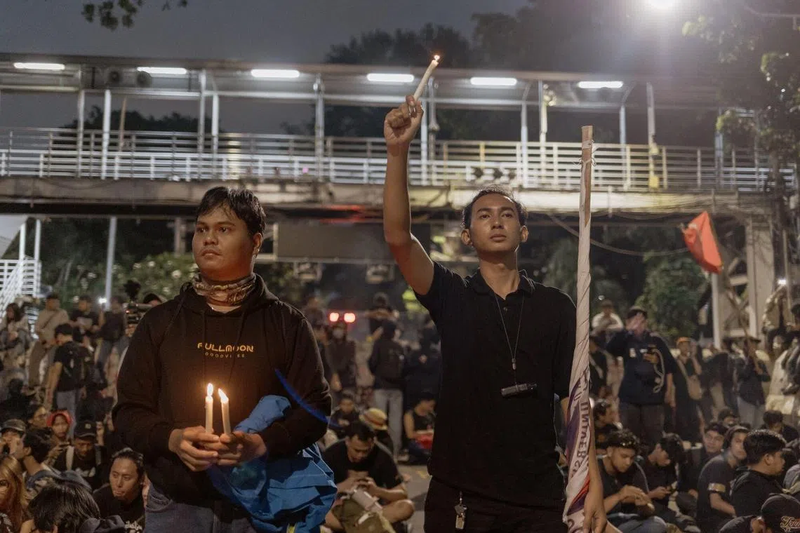 Demonstrators hold candles during a protest against Indonesian President Prabowo Subianto near the Presidential Palace in Jakarta, Indonesia, on Feb 21.