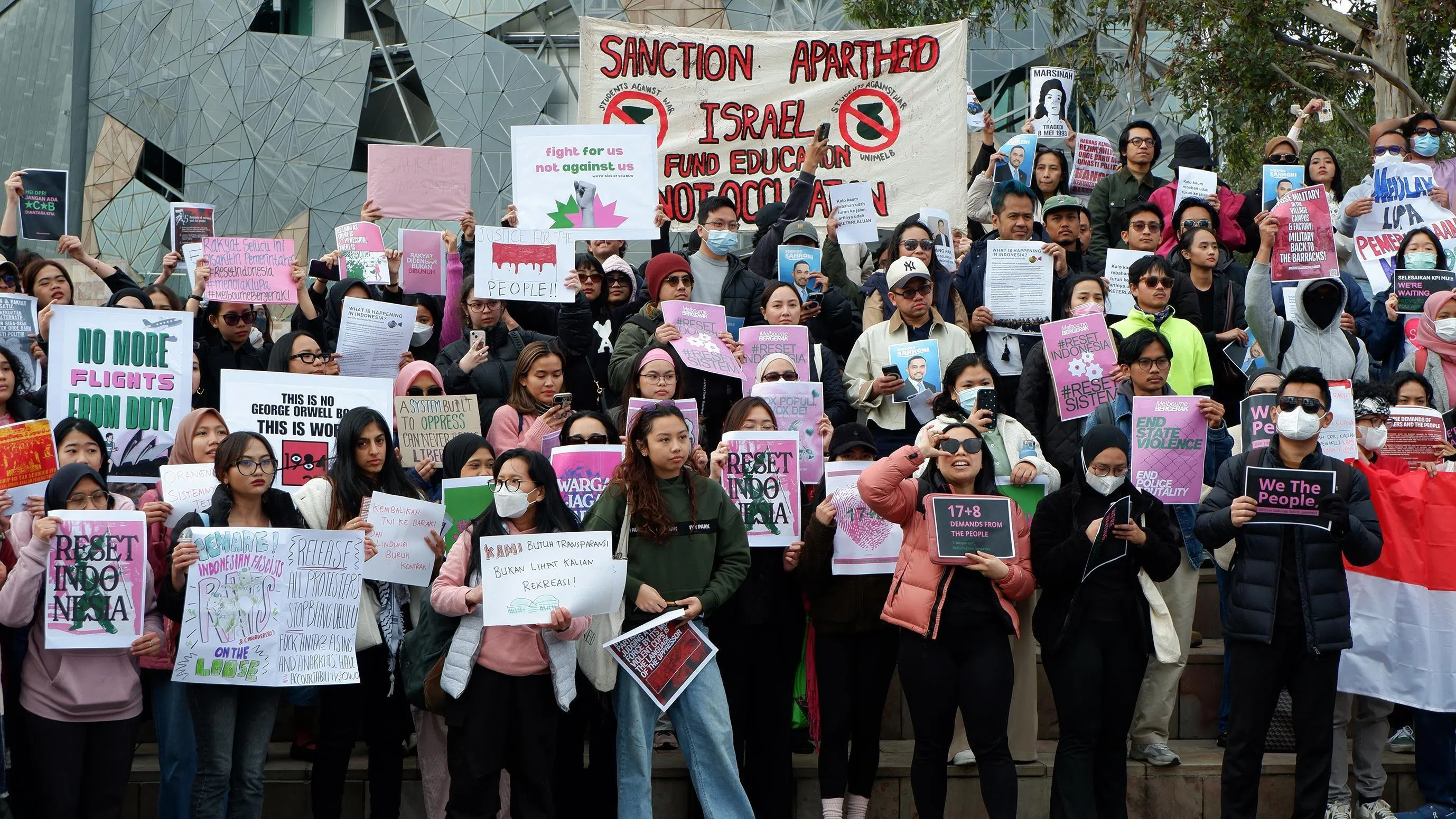 Since 2024, numerous diaspora groups have sprouted up across the globe – including in the US, Germany, Japan, Egypt and South Korea – in solidarity with protesters at home, one of the most prominent being Melbourne Bergerak (Melbourne Takes Action).