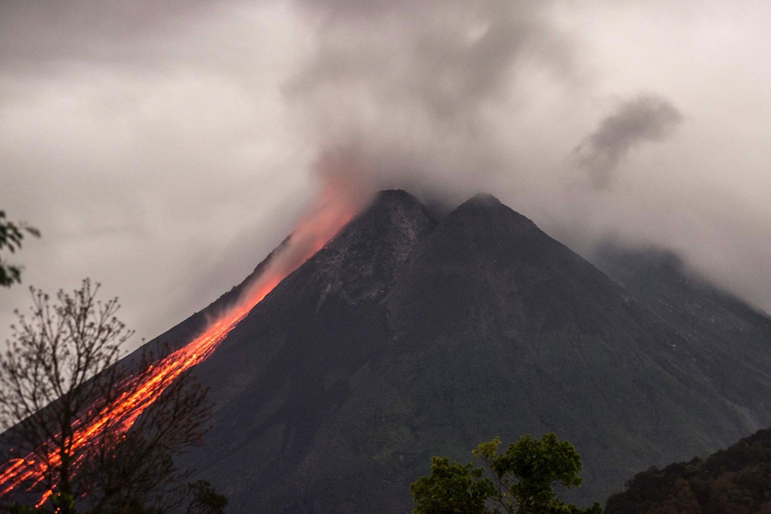 Ash and lava spewing from Mount Merapi on June 25, 2021.