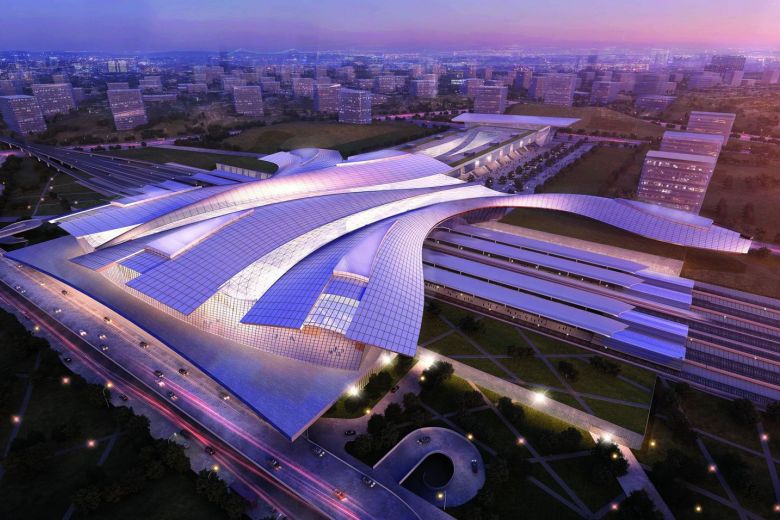 Artist's impression of the upcoming Iskandar Puteri High Speed Rail station in Johor, Malaysia.