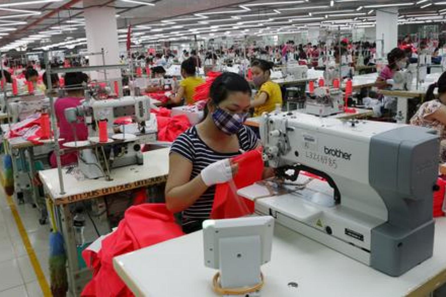 Labourers work at an assembly of Singlun Star garment factory outside Hanoi, Vietnam.
