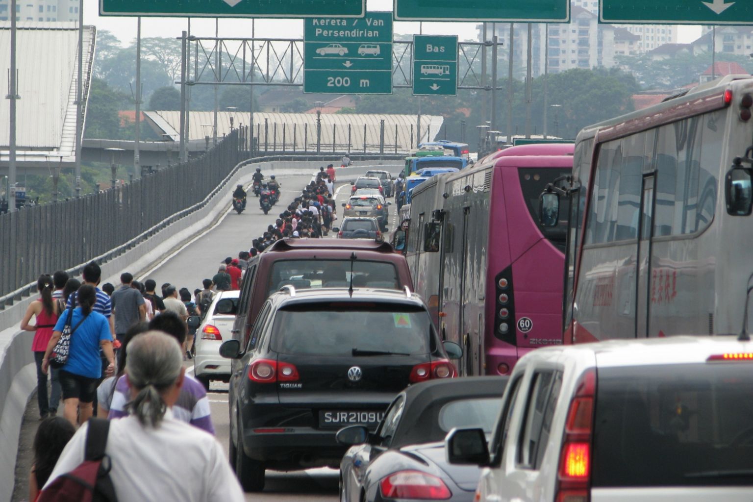 "We've found that many bus passengers are encroaching on lanes used by vehicles to beat the traffic before continuing their journey by public transport when they reach the other side (Singapore)," he told reporters after visiting the proposed site for the walkway at the Sultan Iskandar Customs, Immigration and Quarantine (CIQ) Complex on Tuesday.