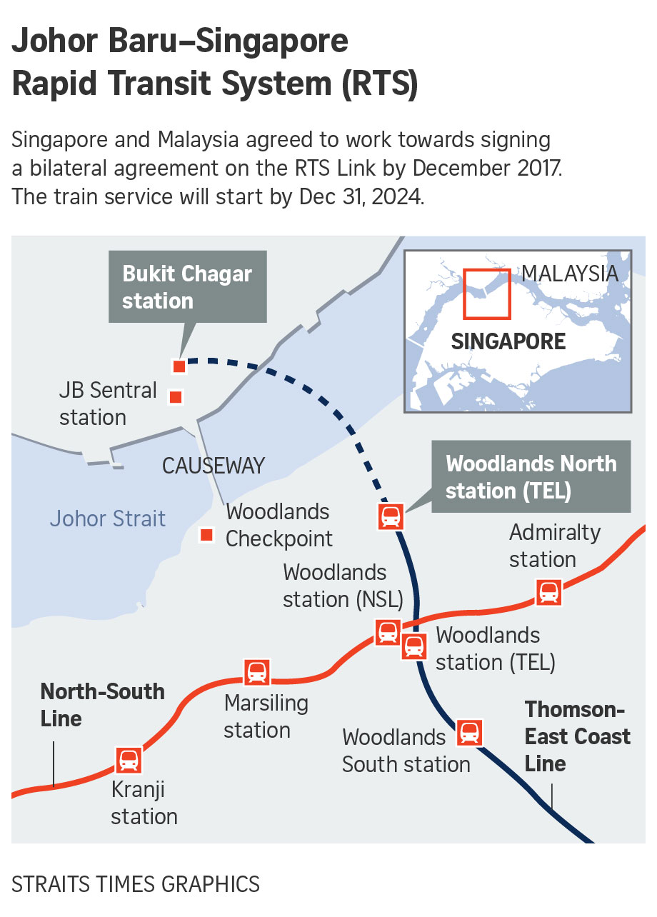 The RTS Link can carry up to 10,000 passengers an hour in each direction between Johor's Bukit Chagar terminus station and the Singapore terminus in Woodlands North, where it will join the upcoming Thomson- East Coast Line (TEL).