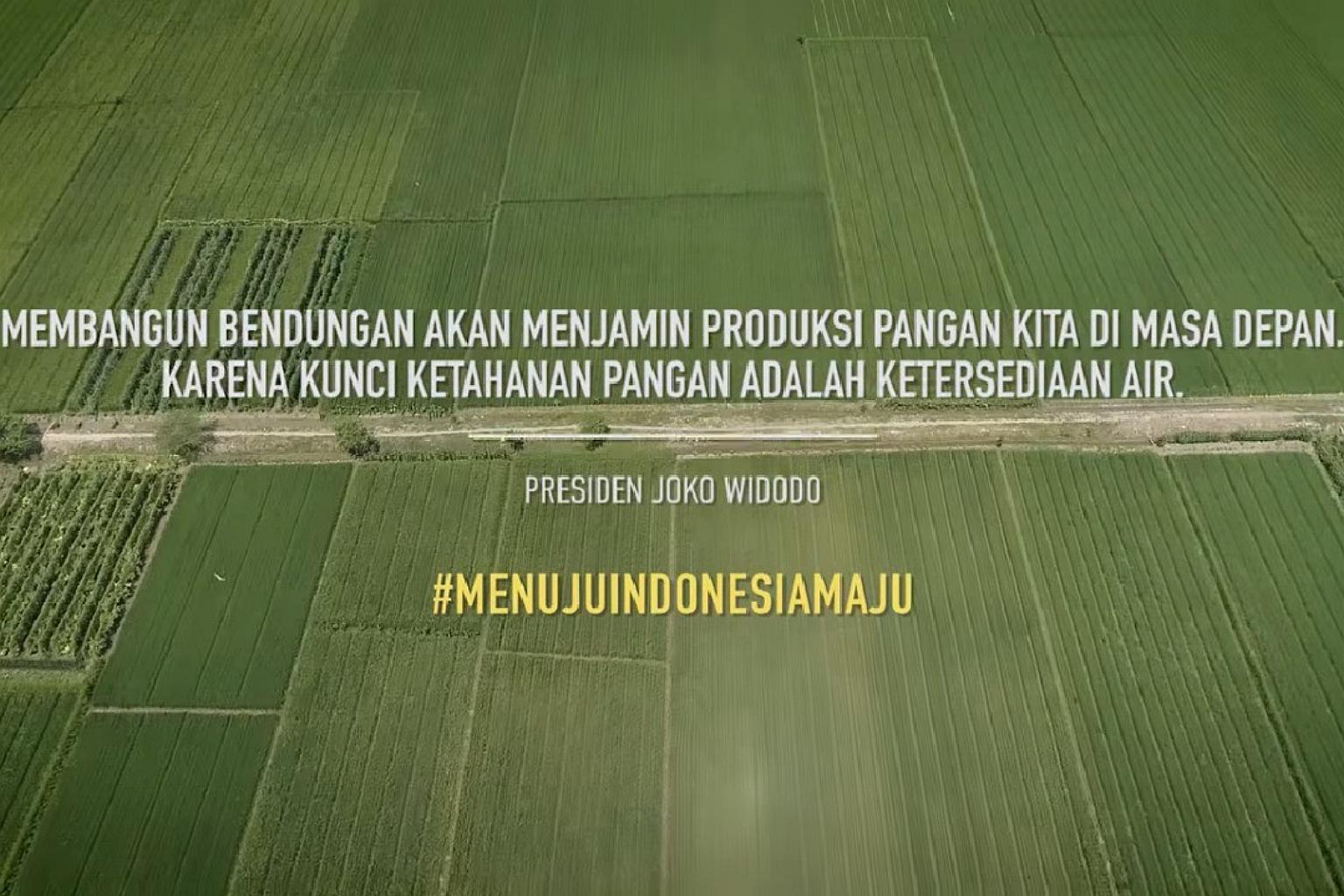 The three-minute commercial showed footage of 65 newly built dams and reservoirs throughout the country, as well as testimony from a farmer who was grateful for them because it helped him and other farmers continuously plant their crops without having to wait for the rainy season.