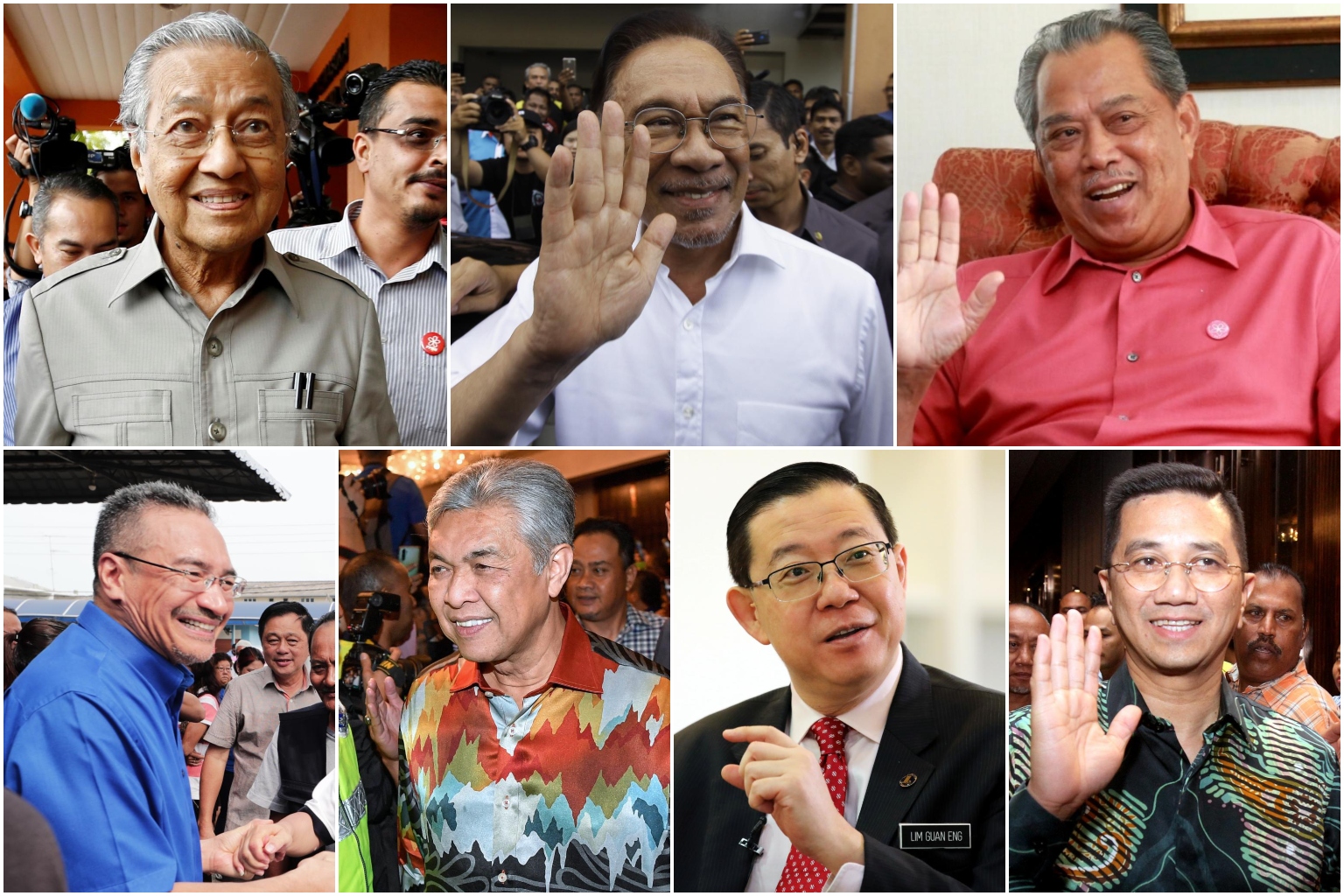 Clockwise from top left: Mr Mahathir Mohamad, Mr Anwar Ibrahim, Mr Muhyiddin Yassin, Mr Azmin Ali, Mr Lim Guan Eng, Mr Ahmad Zahid Hamidi and Mr Hishammuddin Hussein.