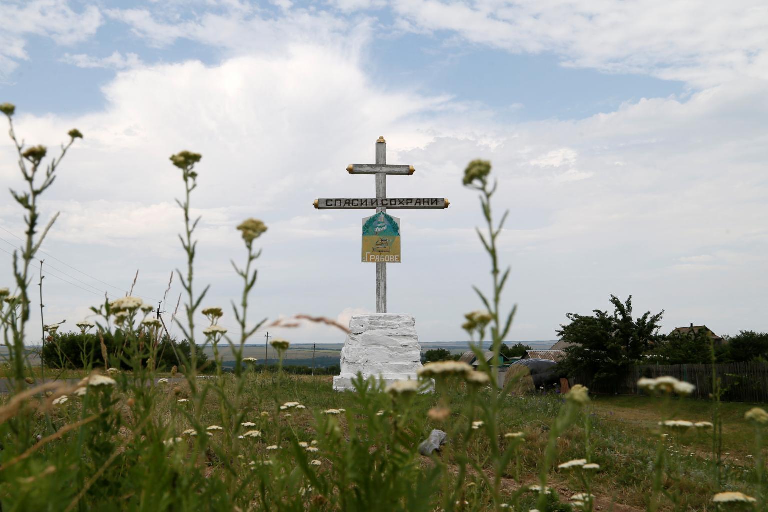 A cross is seen near the crash site of Malaysia Airlines flight MH17 outside the village of Hrabove in Donetsk Region, Ukraine, on June 19, 2019.