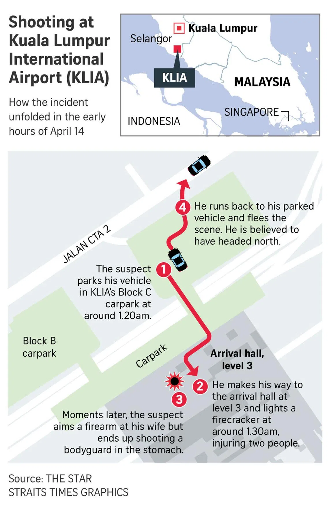Malaysian police said they had refrained from exchanging gunfire with a suspect linked to the April 14 shooting at Kuala Lumpur International Airport Terminal 1 (KLIA 1) due to the potential danger posed to bystanders.