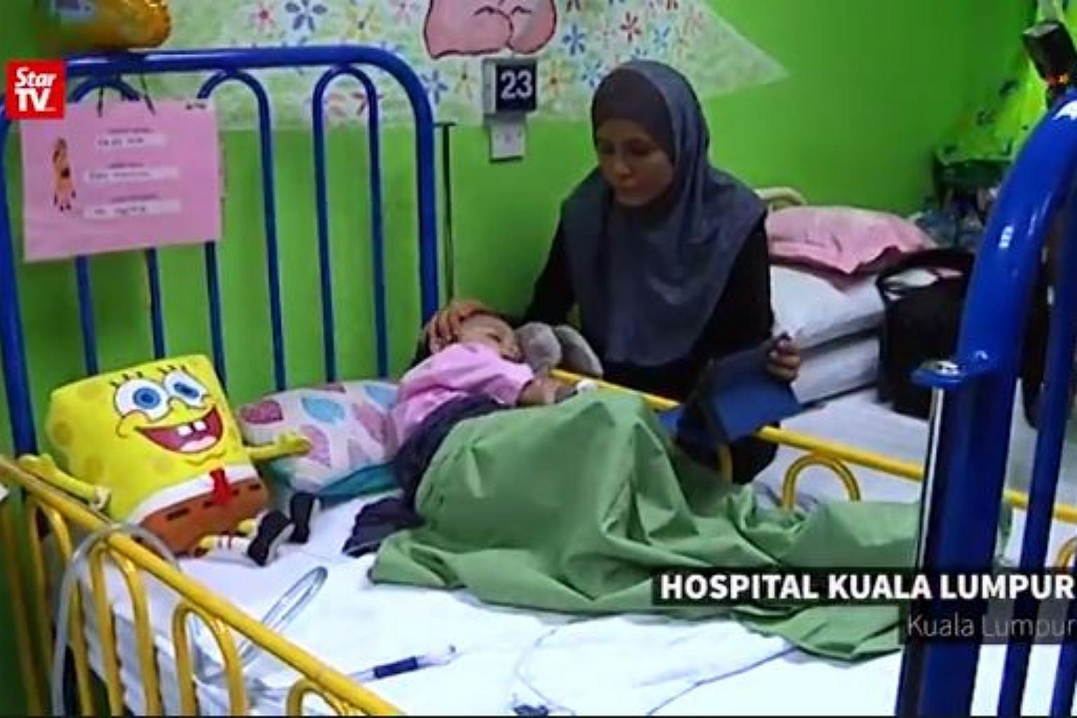Toddler Dzil Mikhail Nasaruddin (on bed) lost part of his left foot in an accident on an escalator in Kuala Lumpur Sentral.