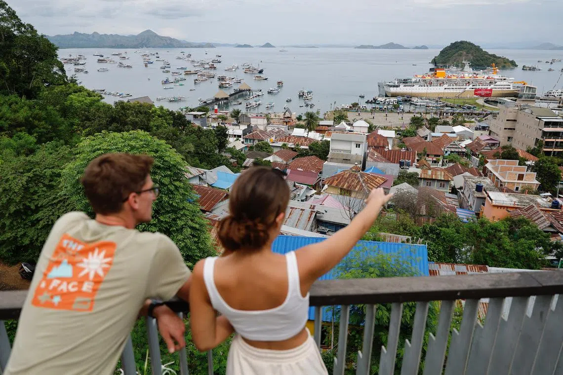 Tourists enjoying a view of Marina Labuan Bajo ahead of the 42nd Asean Summit in Labuan Bajo, East Nusa Tenggara, Indonesia, on May 9, 2023.