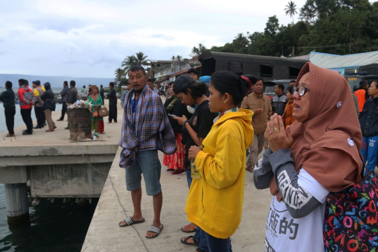 A woman prays for her son, a passenger on the KM Sinar Bangun ferry which sank in Lake Toba, in Simalungun, North Sumatra, Indonesia, on June 19, 2018