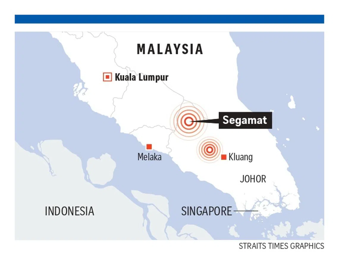 The earthquake struck Segamat – an inland Johor city of more than 200,000 residents some 180km north of Singapore – at 6.13am.