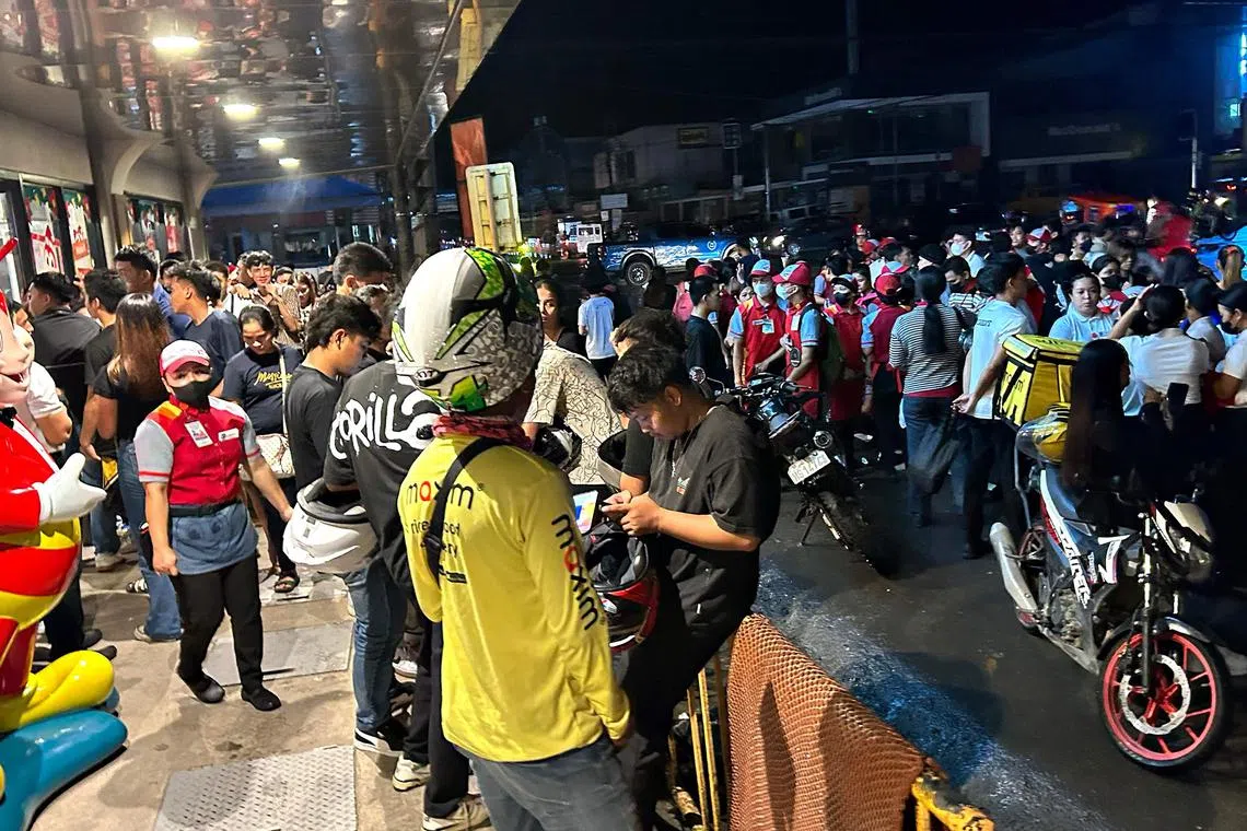 People gather along a street after evacuating from inside buildings following a 7.4 earthquake in Mindanao on Dec 2.