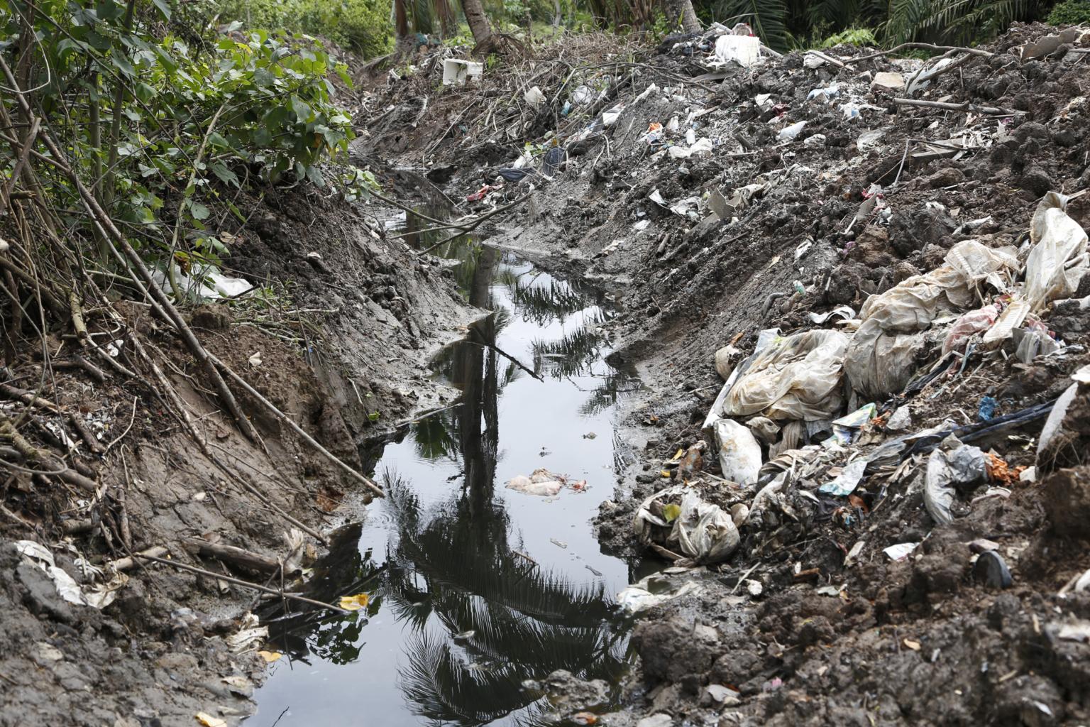A polluted ditch at a dumpsite near a prawn farm at Jenjarom, Klang, outside Kuala Lumpur.