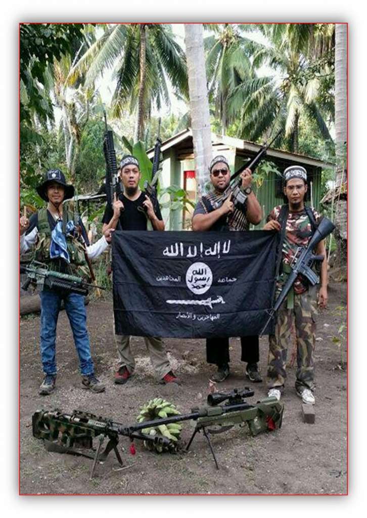 (From left) An Abu Sayyaf fighter with Malaysian militants Mahmud Ahmad, Muhammad Joraimee Awang Raimee and Muamar Gadafi.