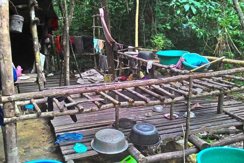 An abandoned migrant detention camp used by people smugglers in a jungle near the Malaysia-Thailand border.