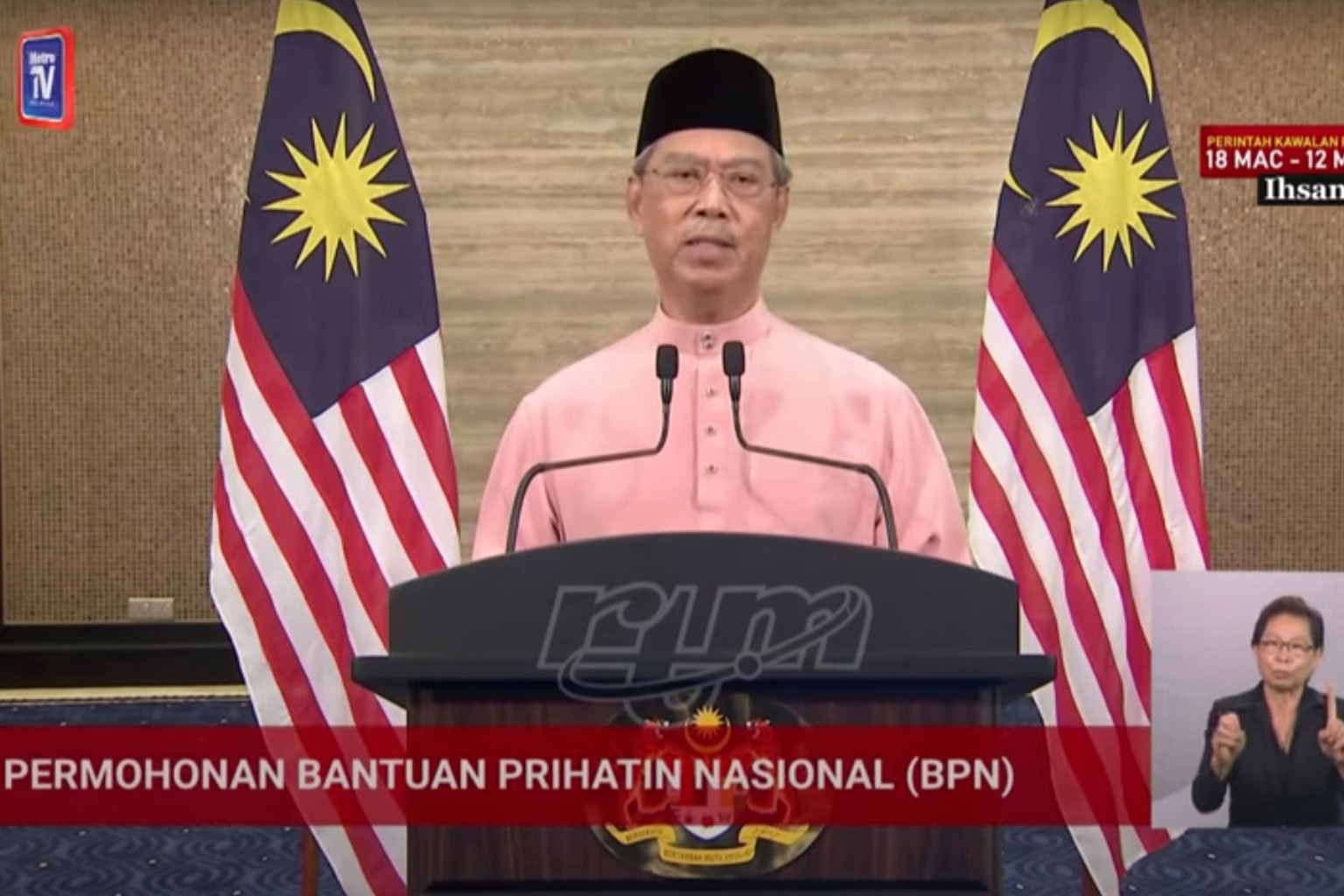 MALAYSIAN PRIME MINISTER MUHYIDDIN YASSIN (above), in a live broadcast.