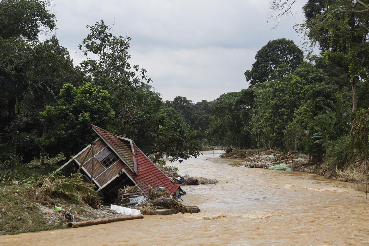 A collapsed house is seen next to a river affected by floods at Hulu Langat, near Kuala Lumpur, on Dec 22, 2021.