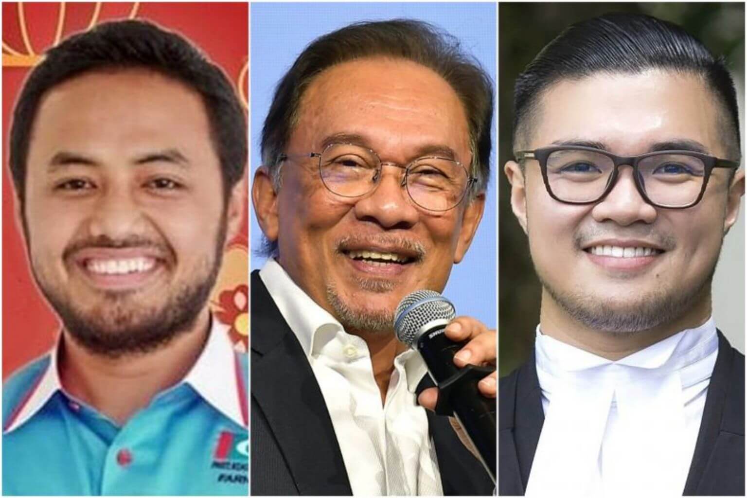 (From left) Parti Keadilan Rakyat (PKR) Perak state chief Farhash Wafa Salvador Rizal Mubarak, PKR president Anwar Ibrahim and former PKR youth leader Haziq Aziz.